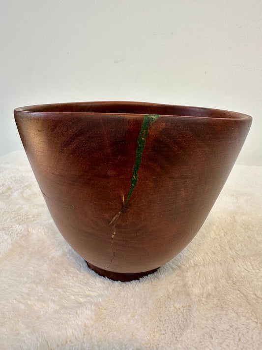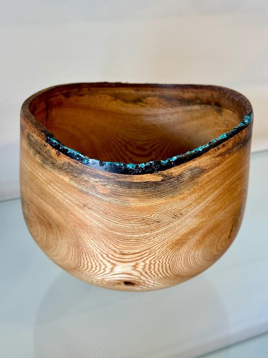 Handmade Artisanal Avocado Wood Bowl with Turquoise Kintsugi Inlay, 6 inches diameter x 5 inches tall, Made in Hawaii