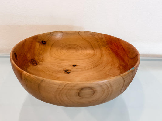 Cypress Wood Salad Bowl with Turquoise Inlay, Handmade in Hawaii, Organic, Food Safe