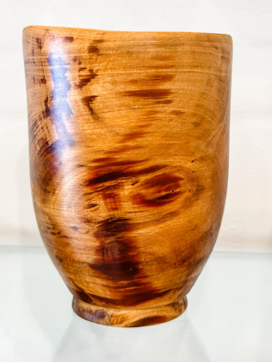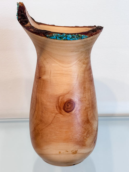 Cypress Wood Vase with Turquoise Gemstone Inlay, Wood Vase, Handmade in Hawaii
