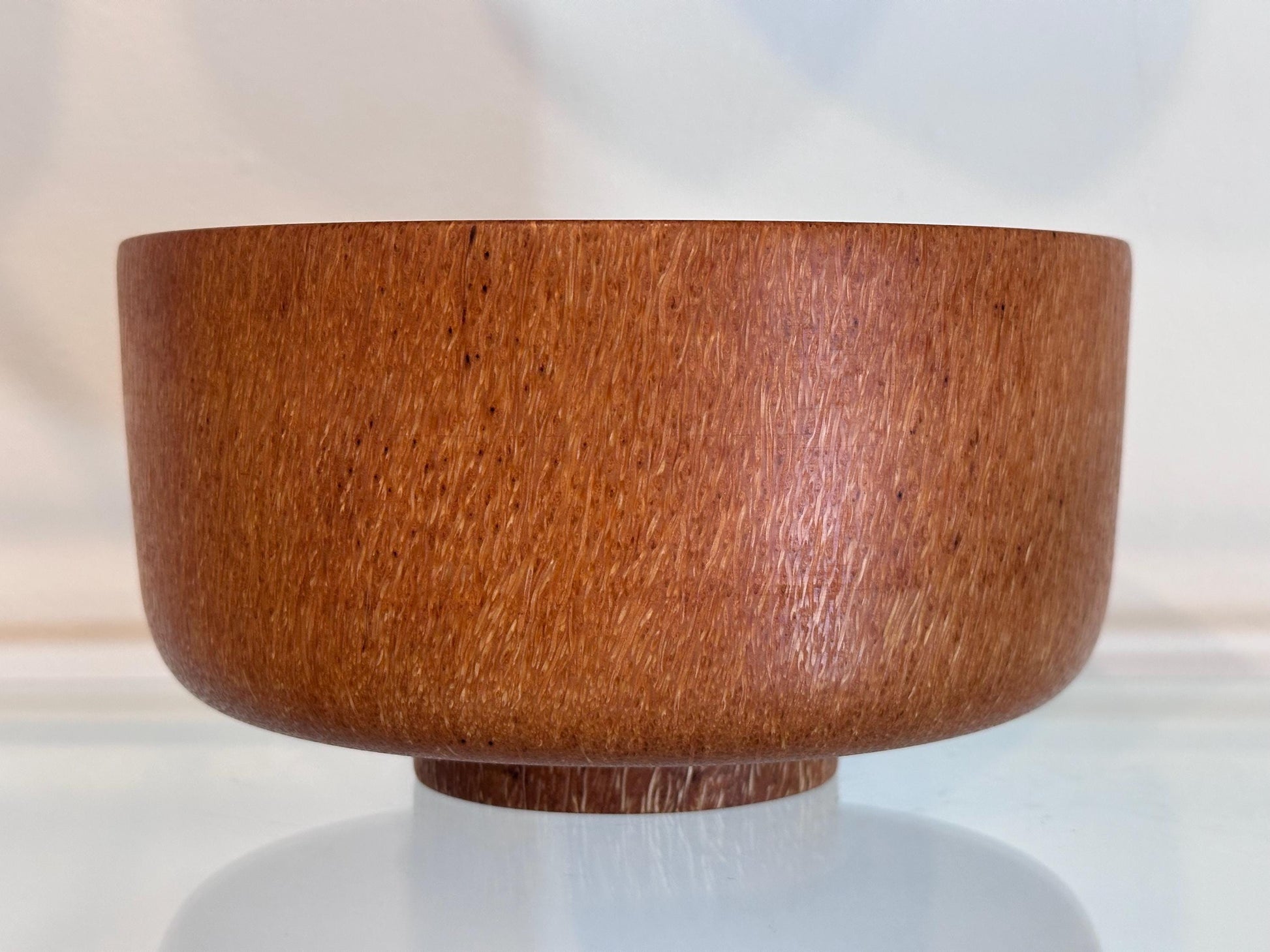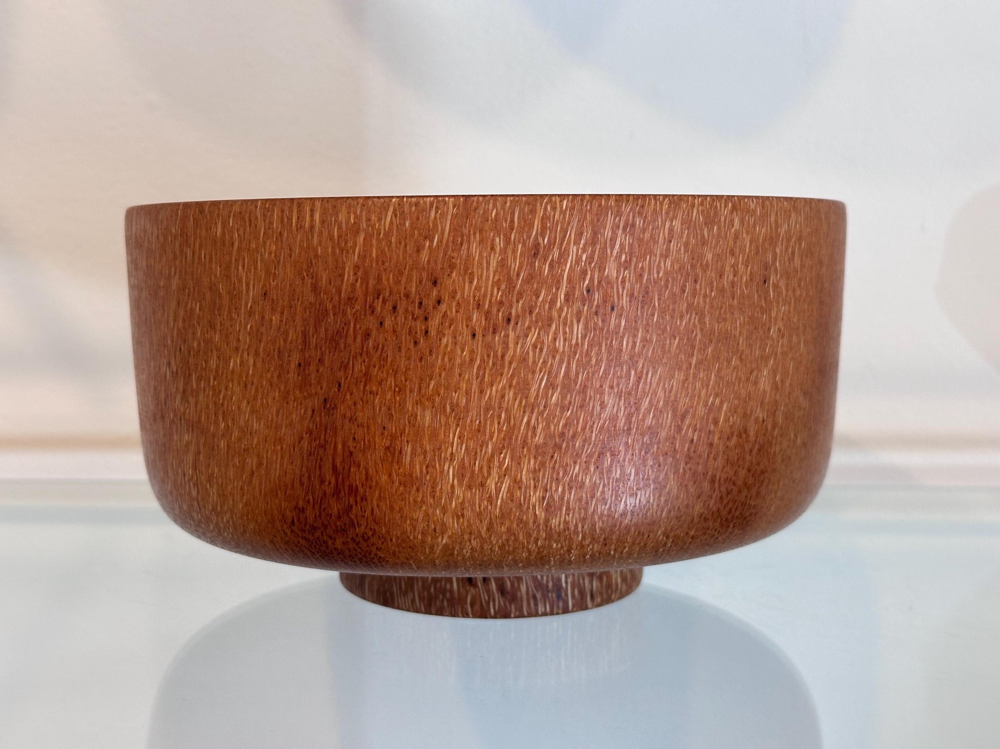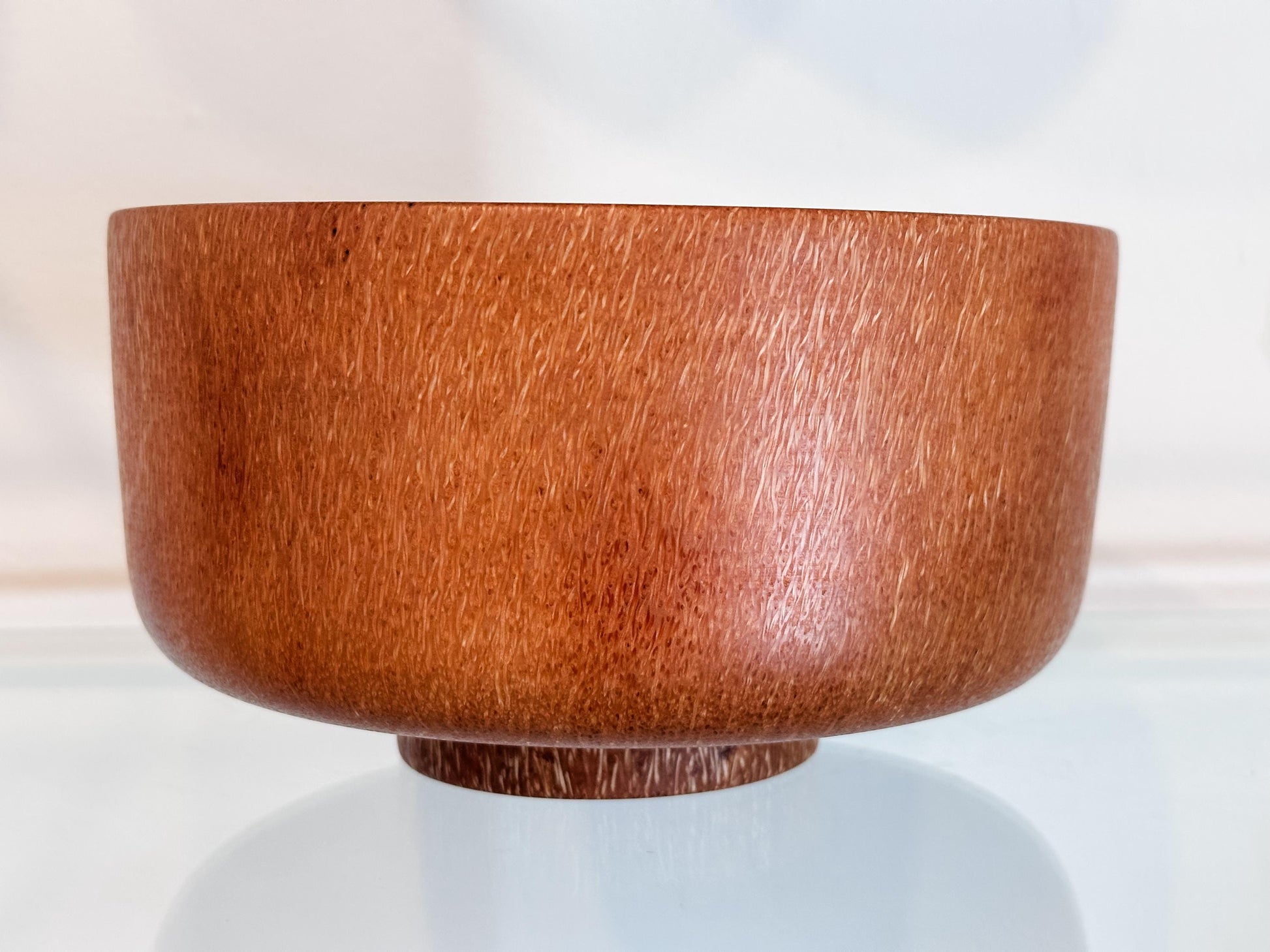 This medium-size coconut wood bowl was handmade by professional bowl turner Llosh Winne on the Big Island of Hawaii. Hand-turned from sustainably-sourced coconut tree, locally-grown on Big Island.