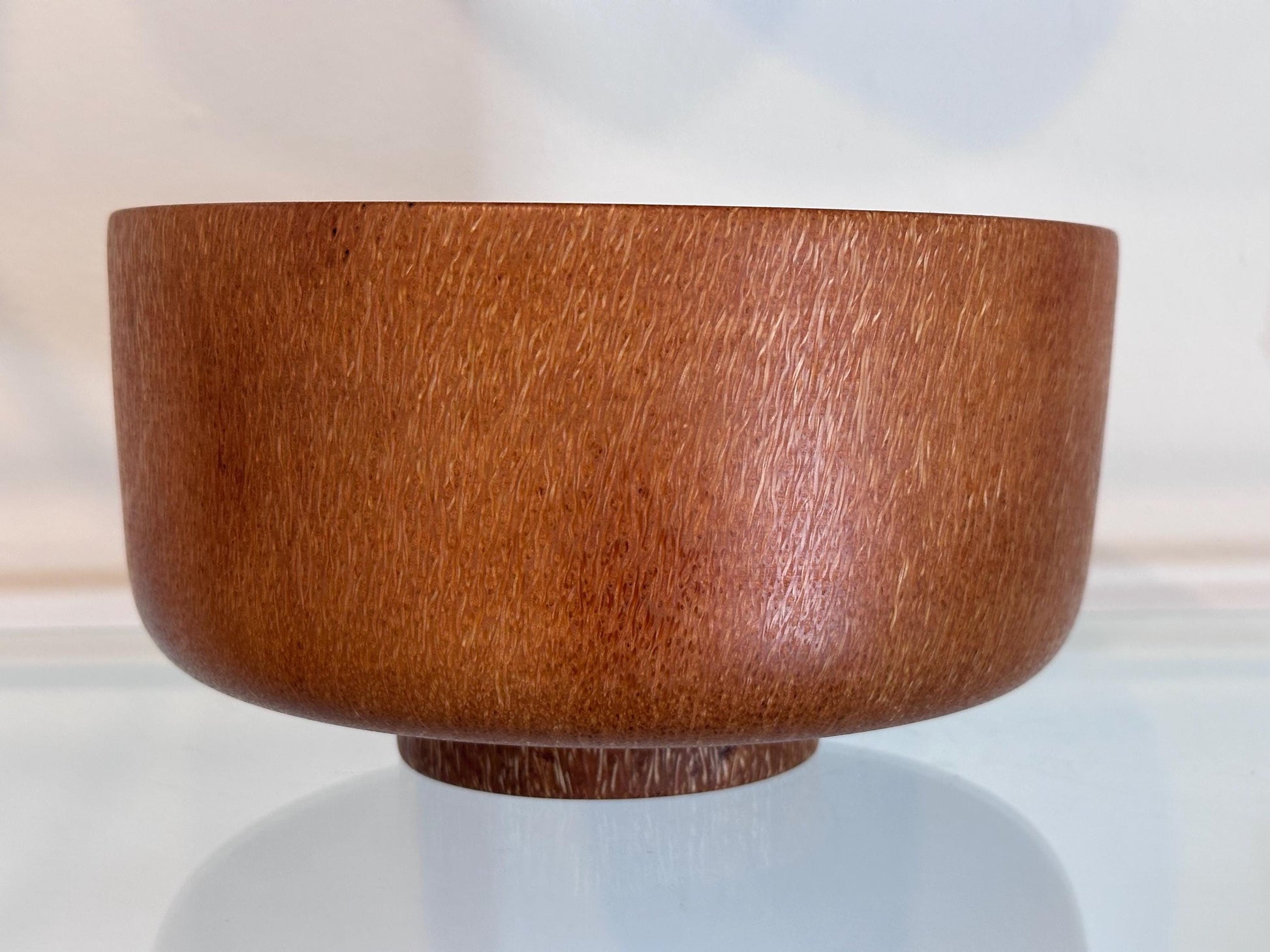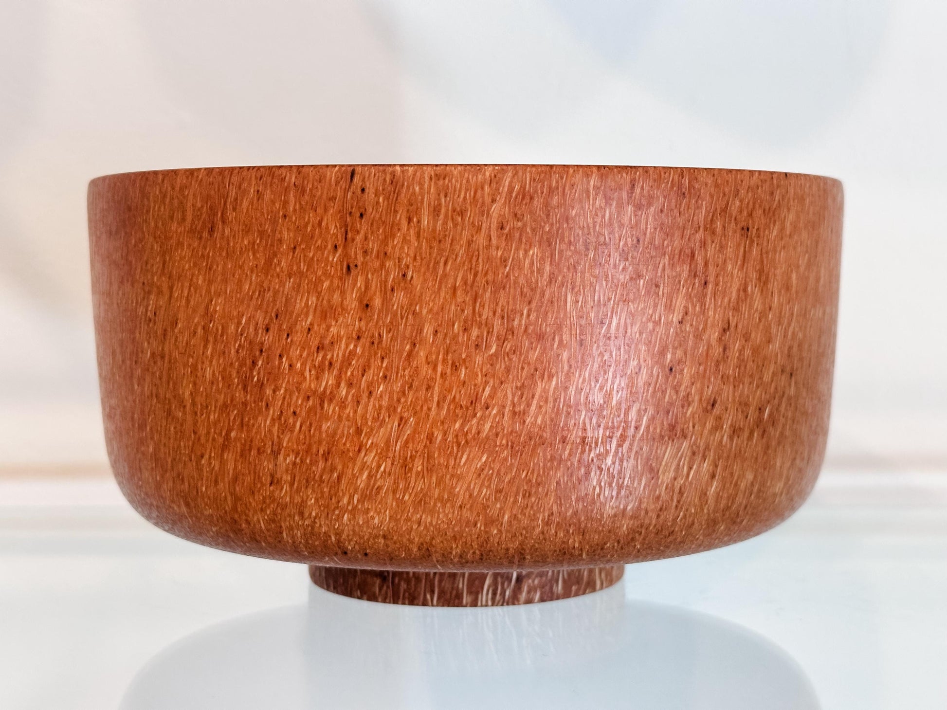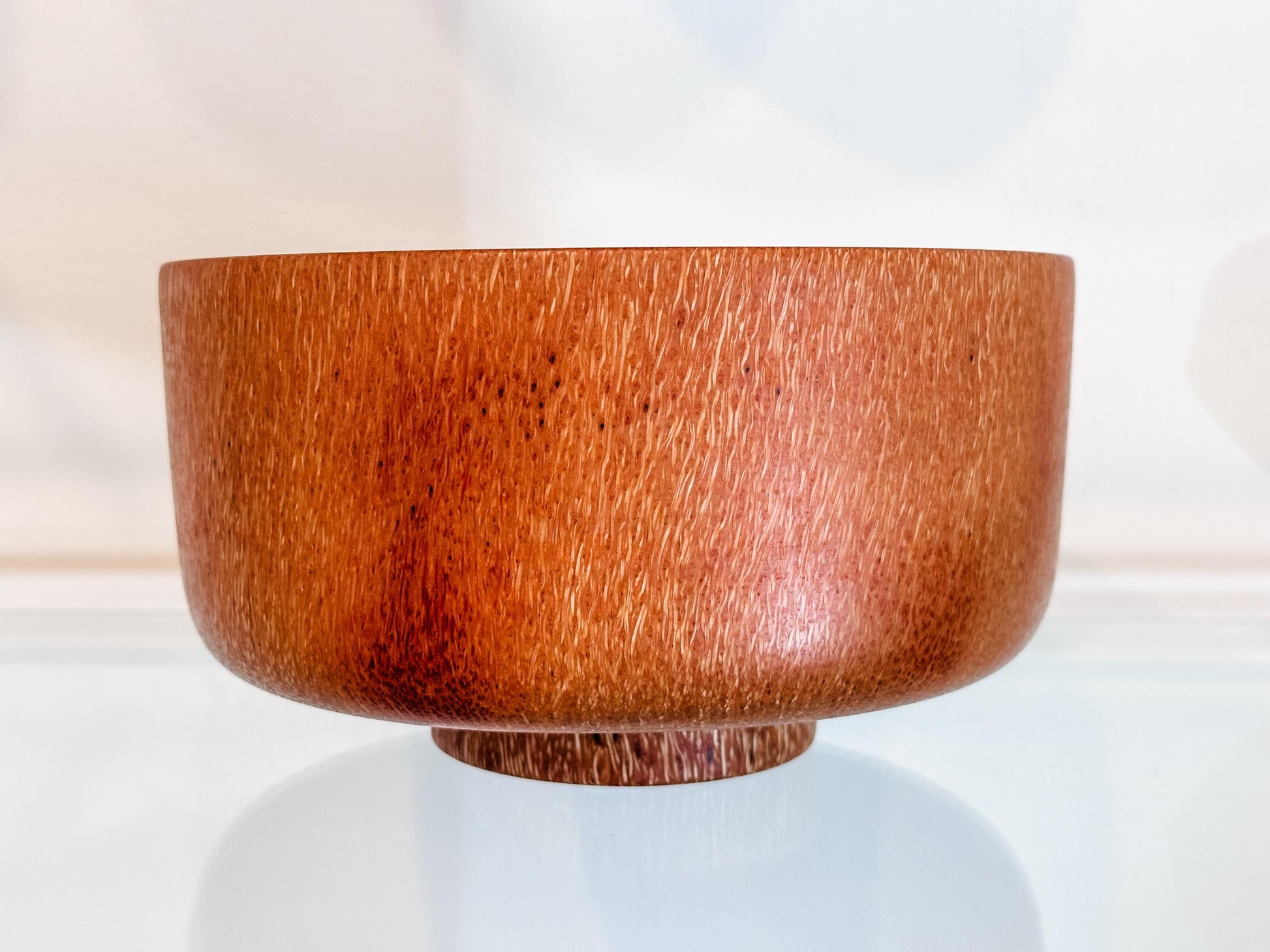 This medium-size coconut wood bowl was handmade by professional bowl turner Llosh Winne on the Big Island of Hawaii. Hand-turned from sustainably-sourced coconut tree, locally-grown on Big Island.