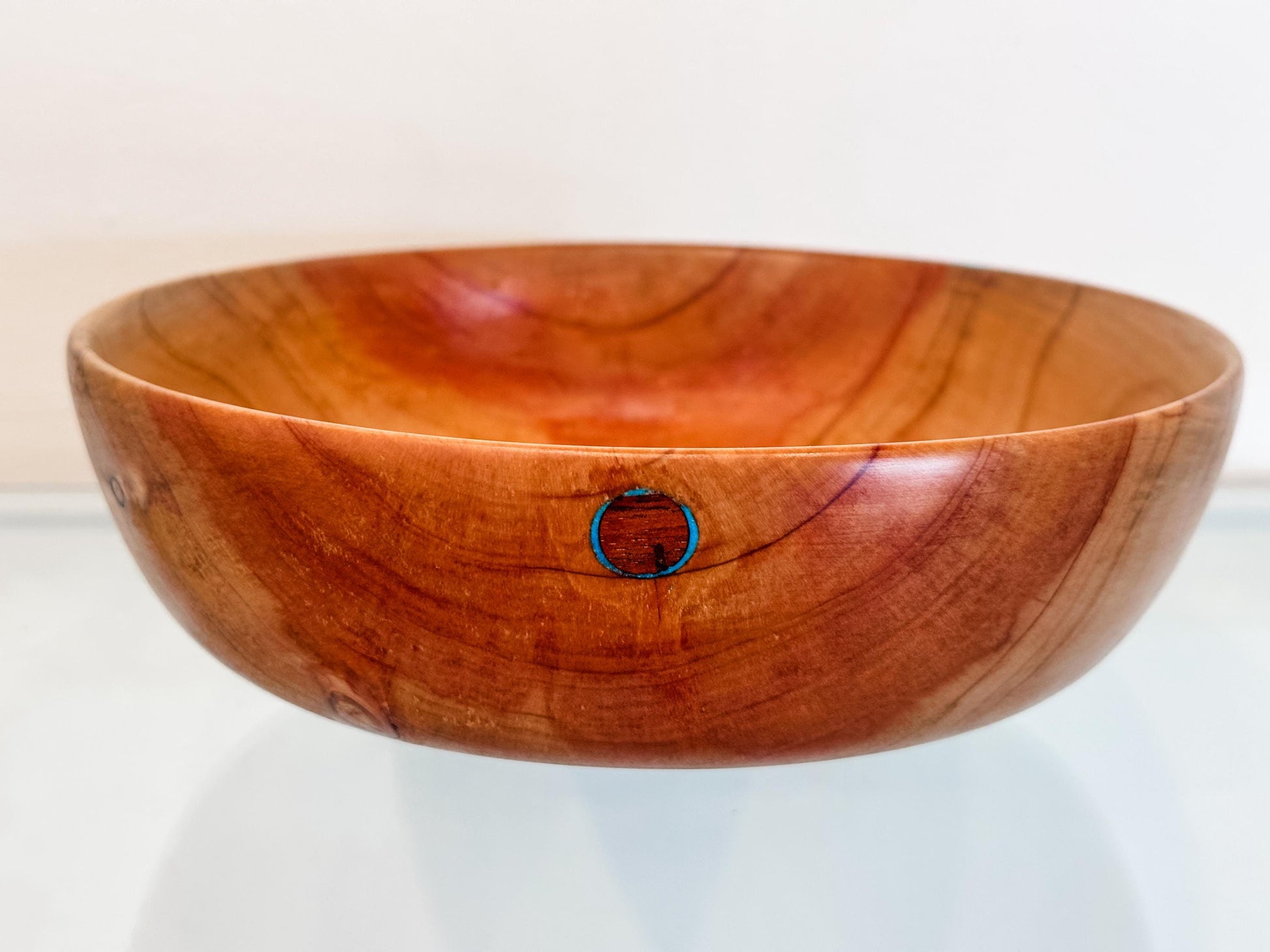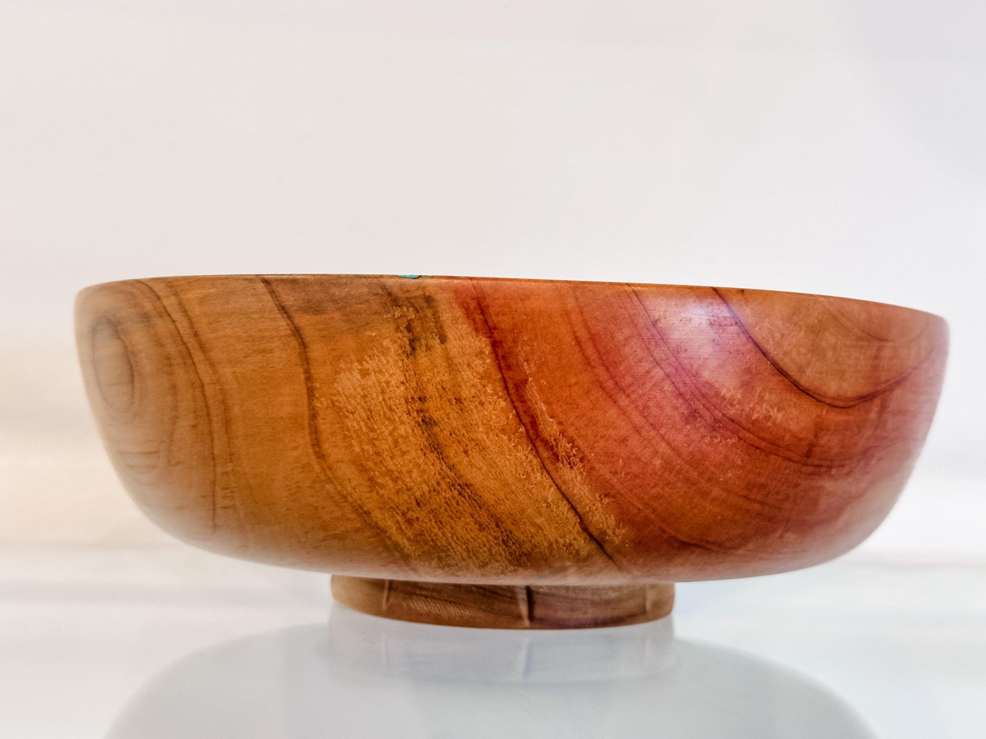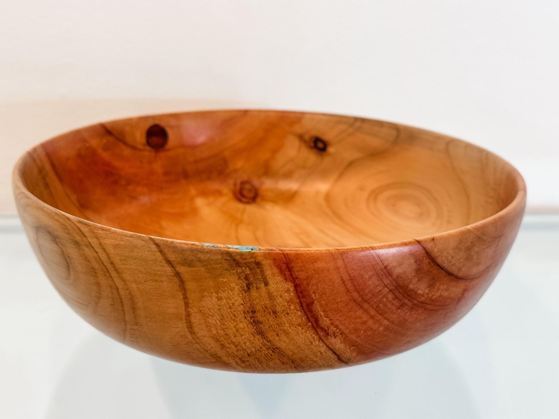 Cypress Wood Salad Bowl with Turquoise Inlay, Handmade in Hawaii, Organic, Food Safe