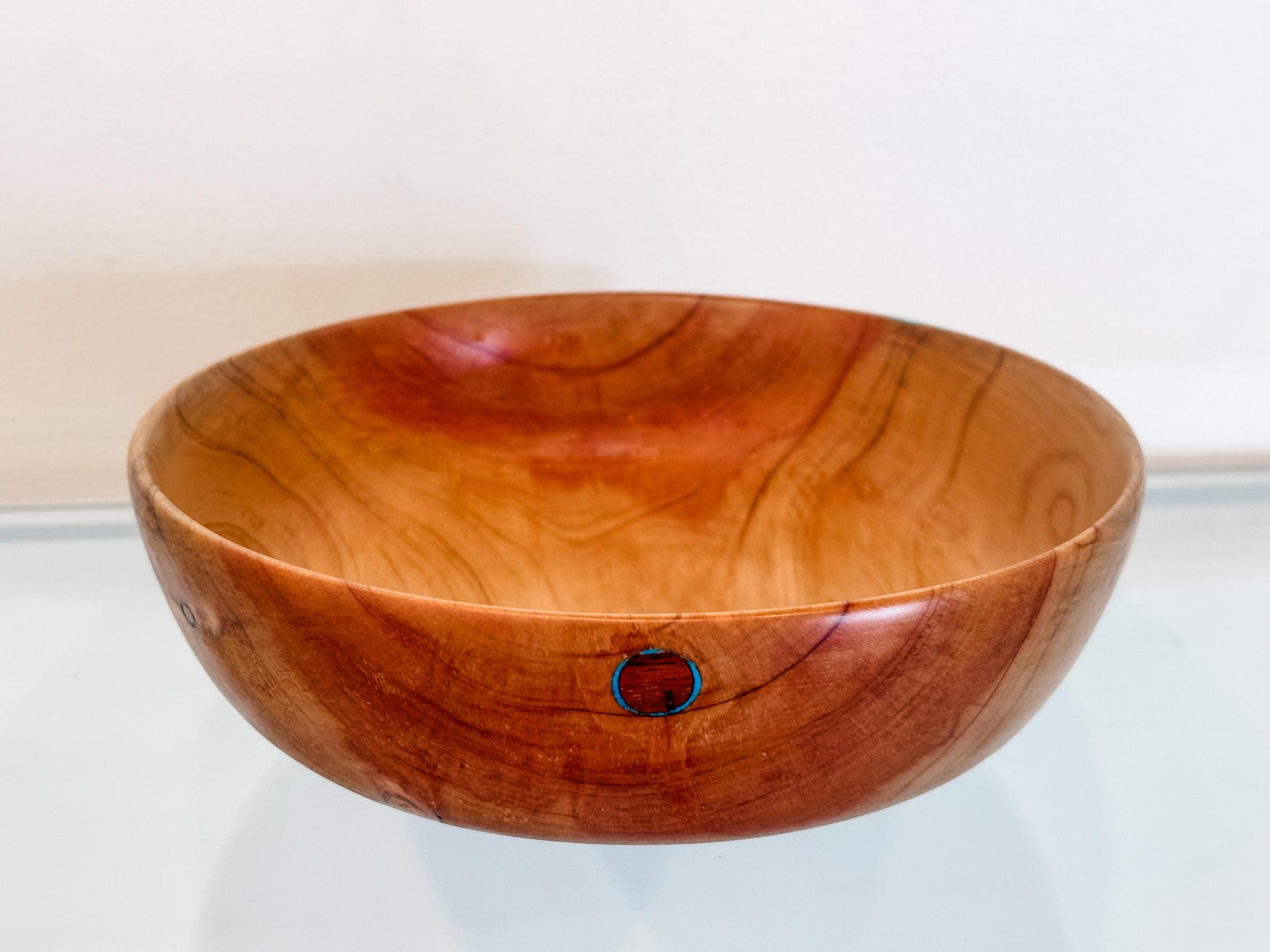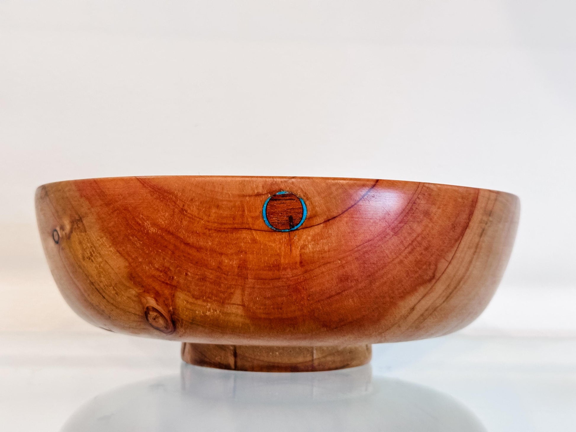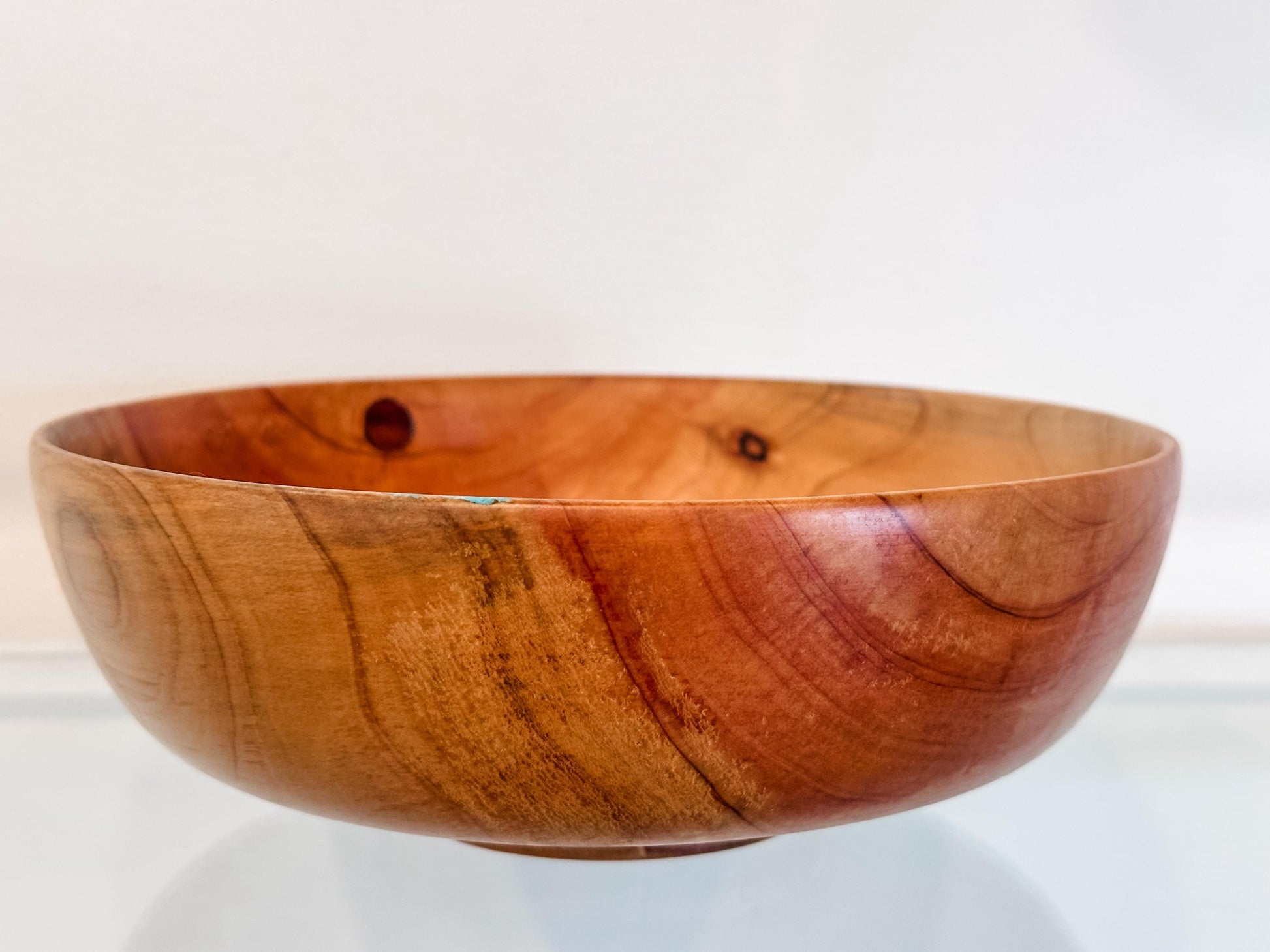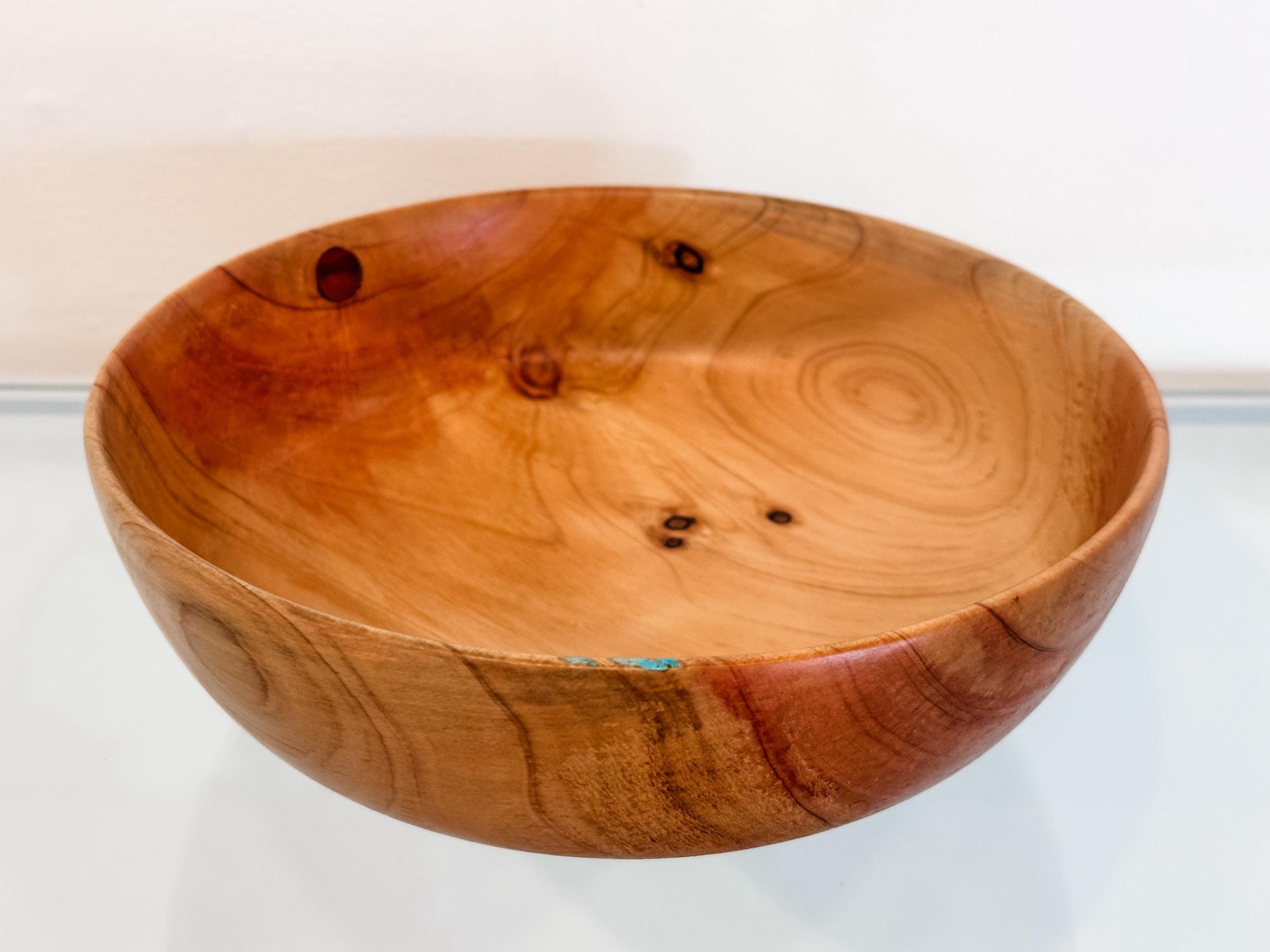 Cypress Wood Salad Bowl with Turquoise Inlay, Handmade in Hawaii, Organic, Food Safe