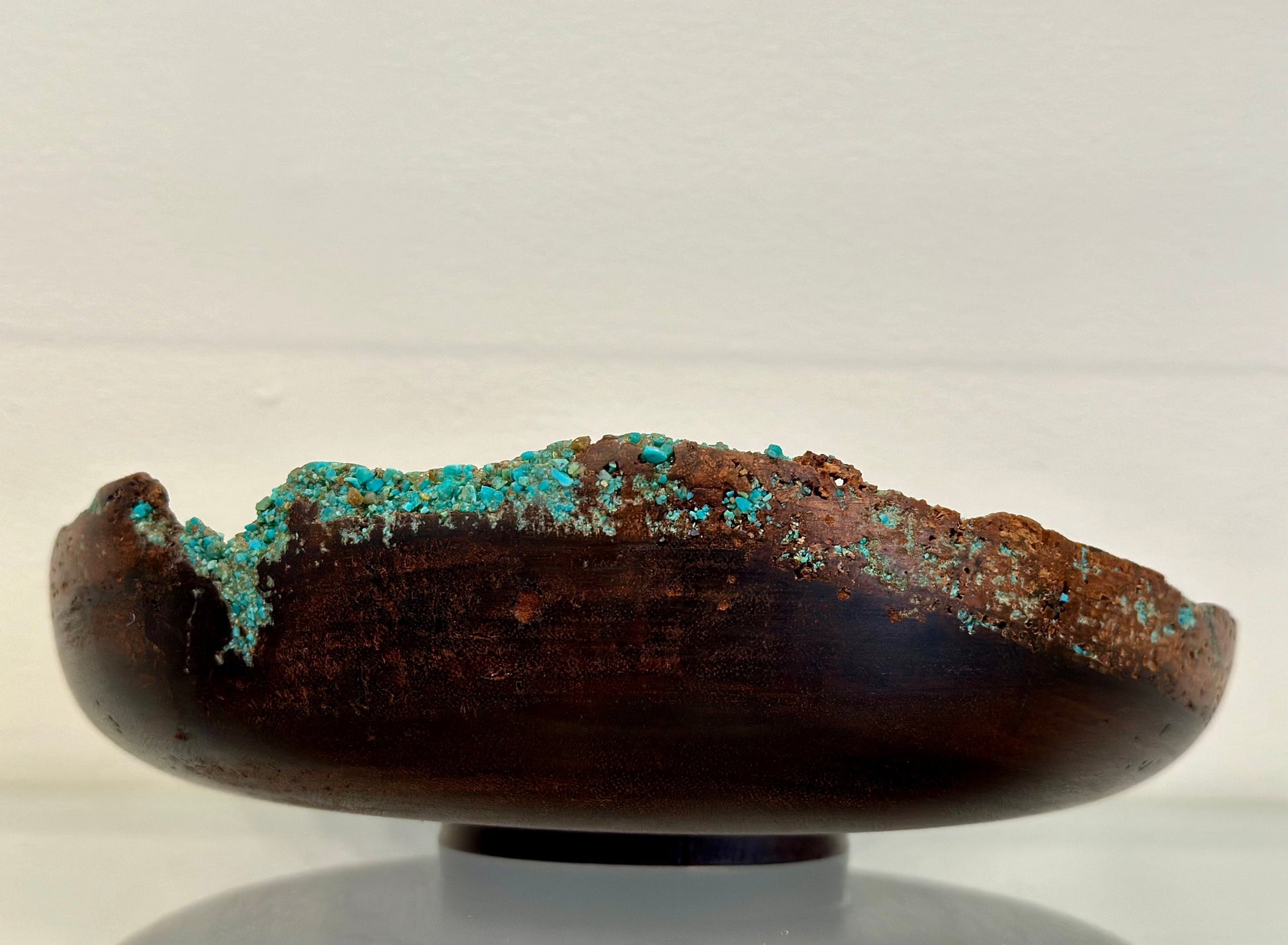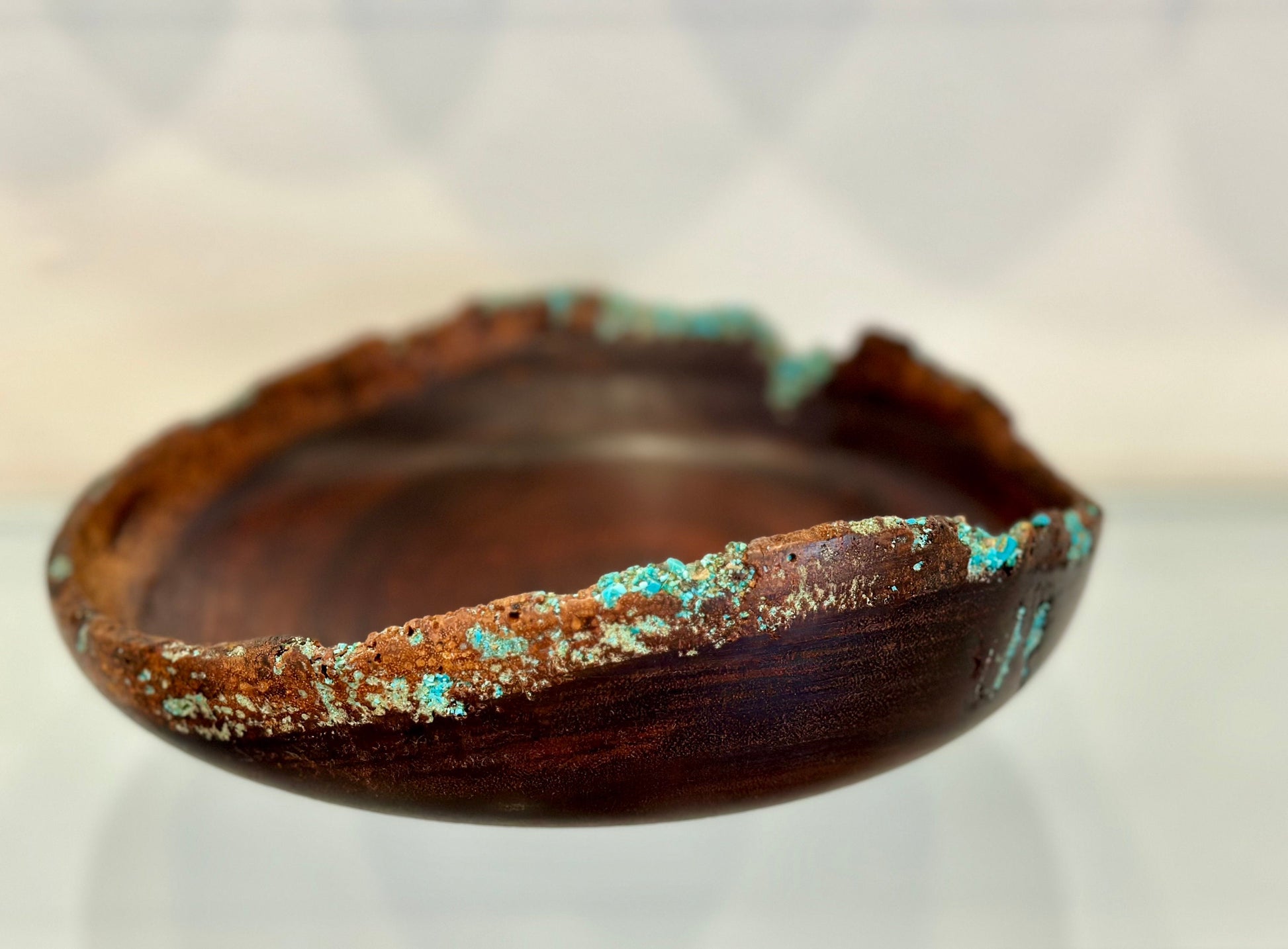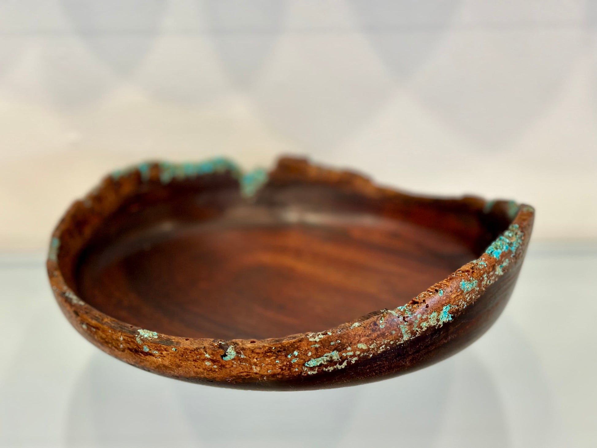 Handmade Chocolate Koa Wood Bowl with Turquoise Inlay, Natural Edge Kintsugi bowl, Hand turned bowl, Made in Hawaii