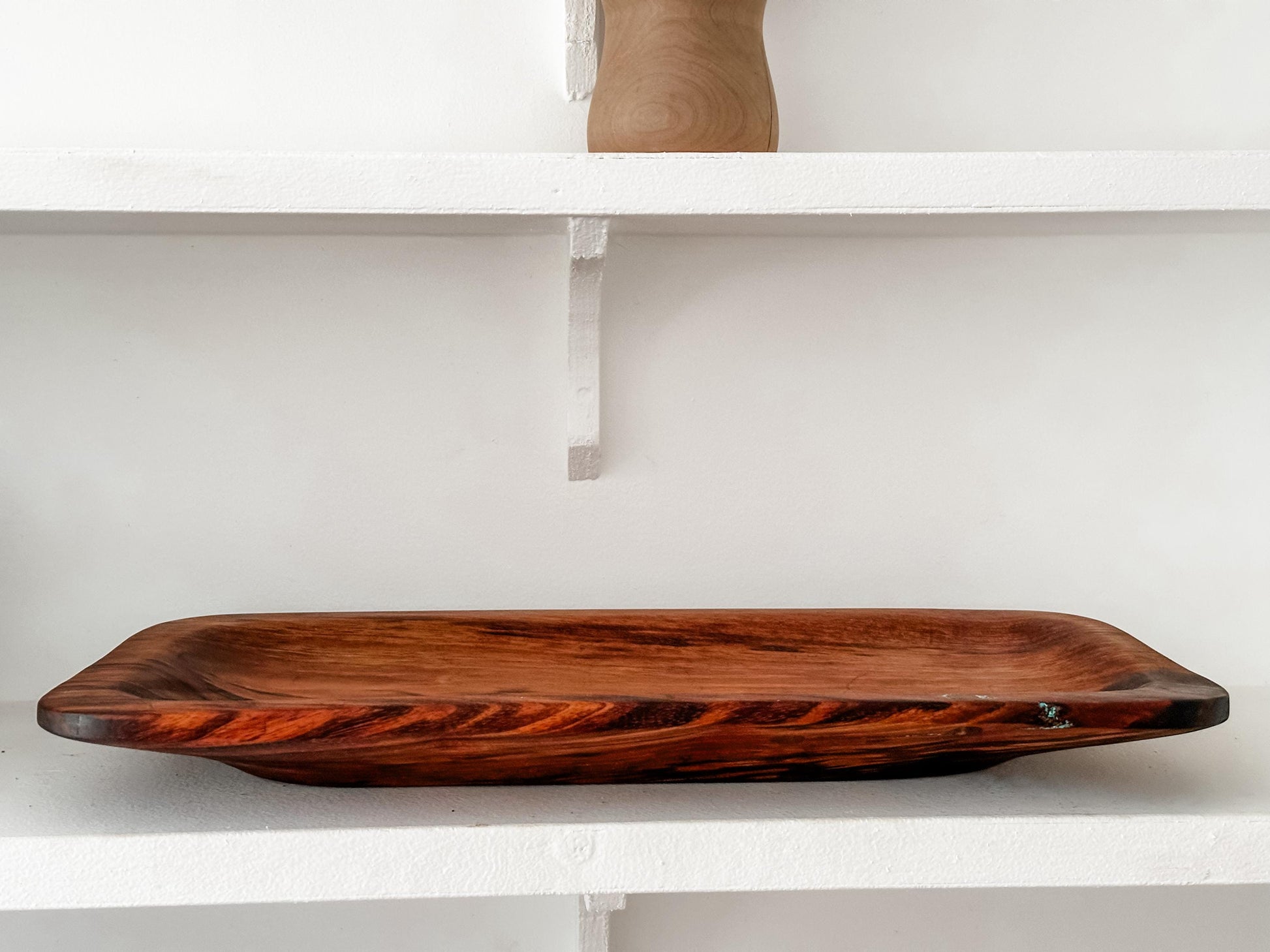 This koa wood platter is perfect for a table centerpiece, serving tray, charcuterie board, wedding gift or home décor item, certain to beautify any kitchen.