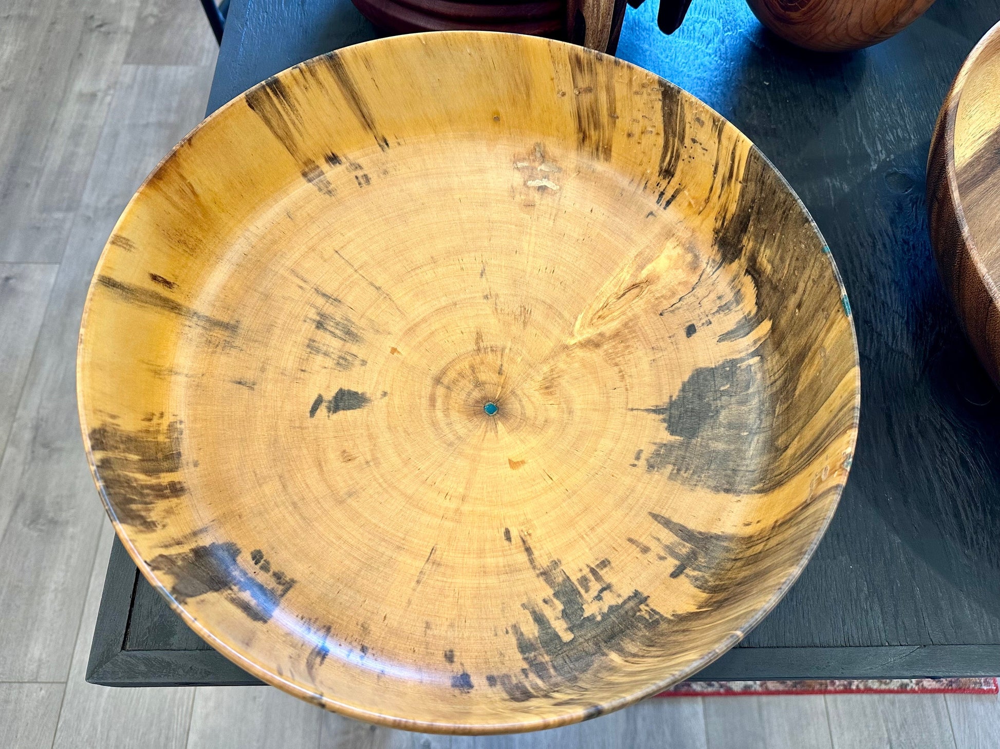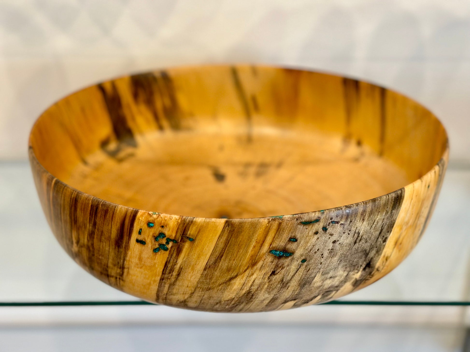 Large Wood Bowl, Handturned Wood Bowl, Norfolk Pine Wood Bowl, Decorated with Turquoise inlay, Handmade in Hawaii by Llosh Winne