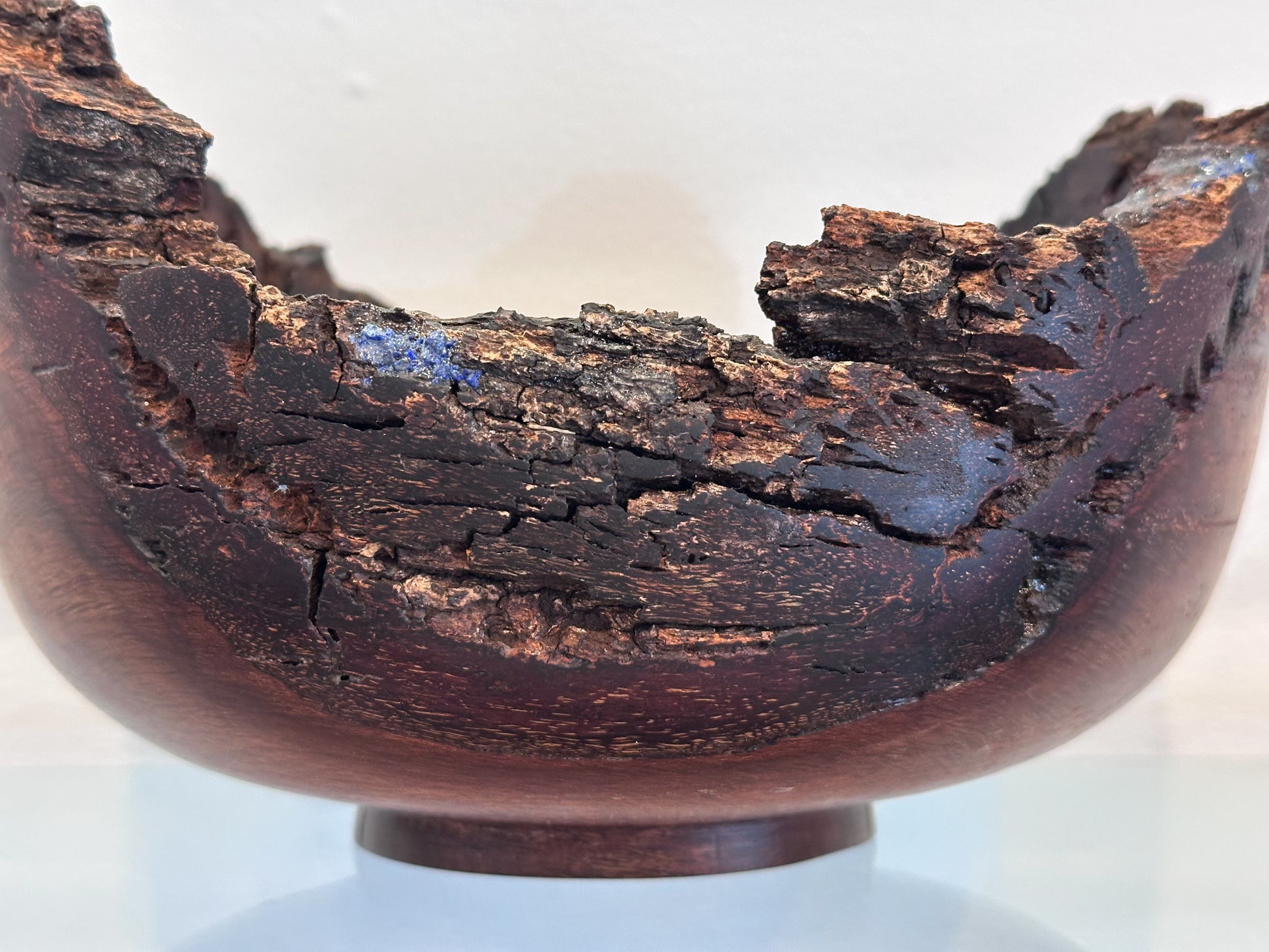 Natural Edge Ironwood Bowl, Handmade in Hawaii, with Lapis Lazuli Inlay