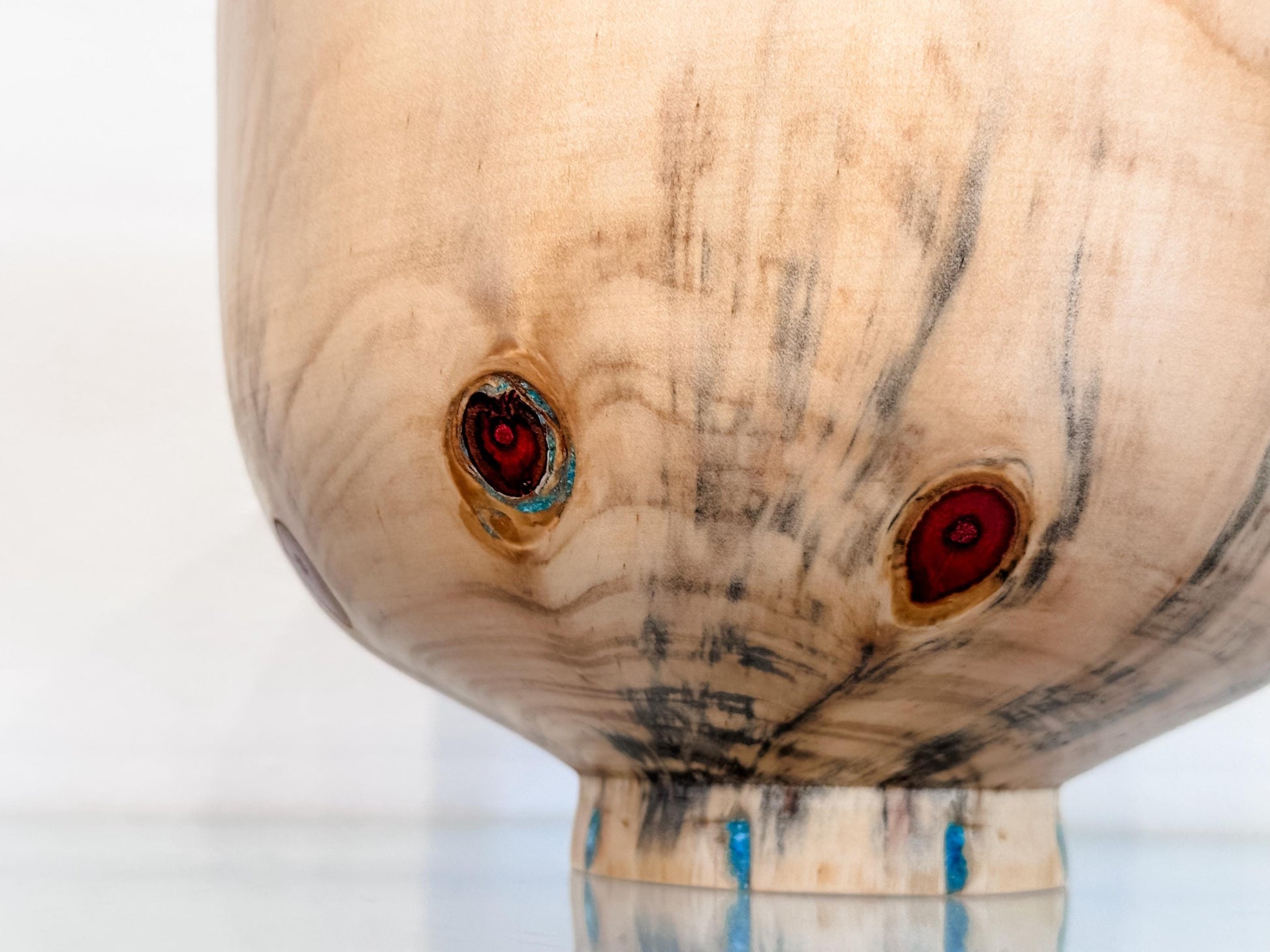 Norfolk Pine Wood Bowl with Turquoise Inlay Detailing, Handmade in Hawaii by Professional Bowl Turner Llosh Winne
