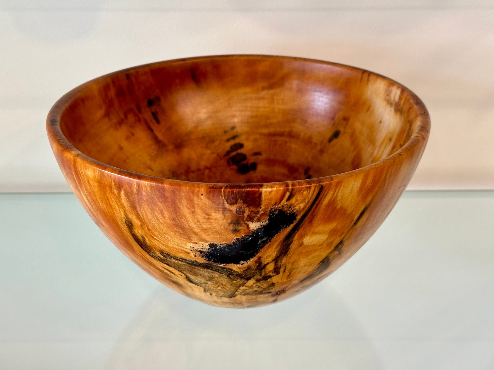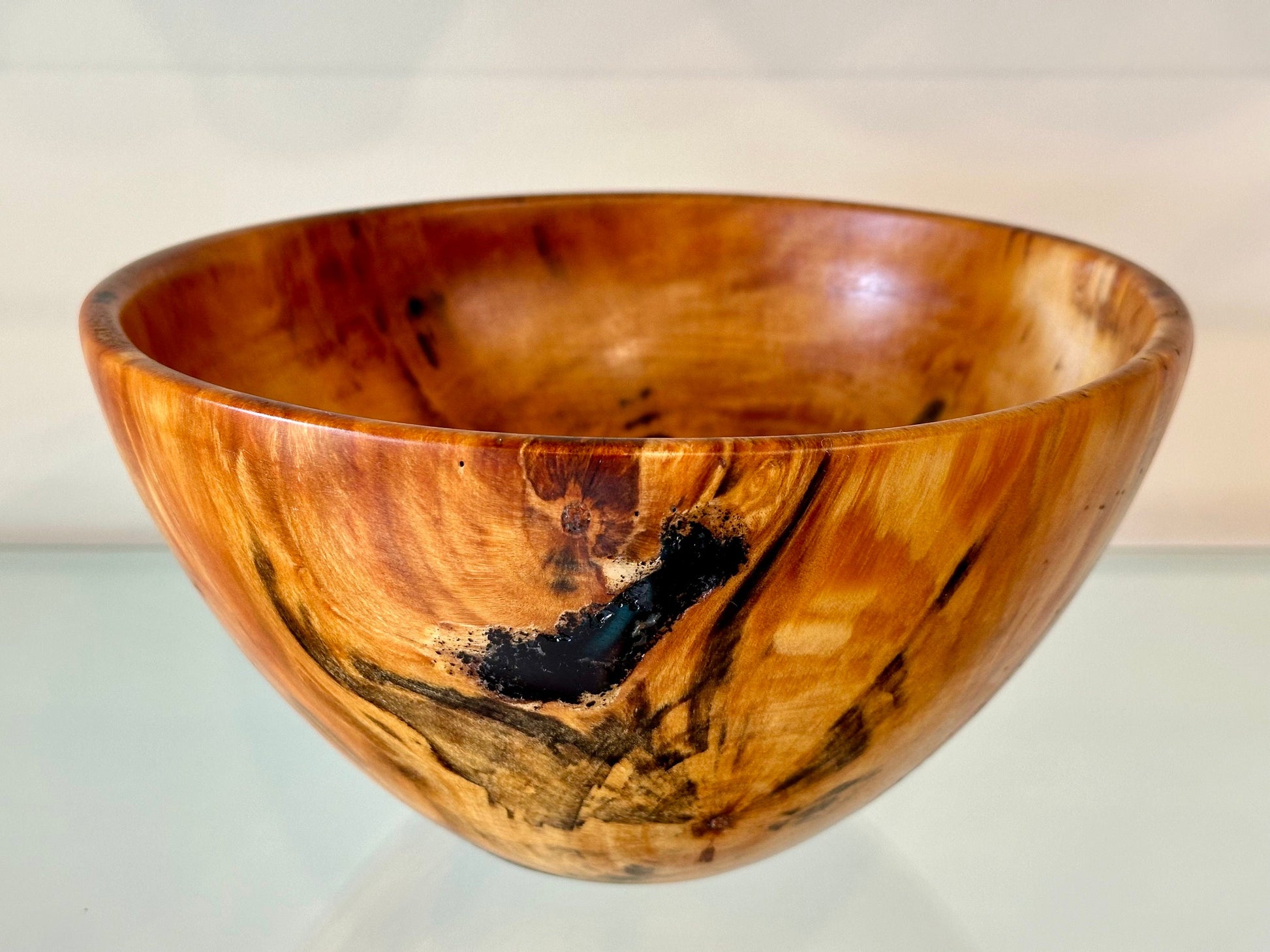 Norfork Pine wood bowl with black Alaskan anthracite inlay, Handmade in Hawaii