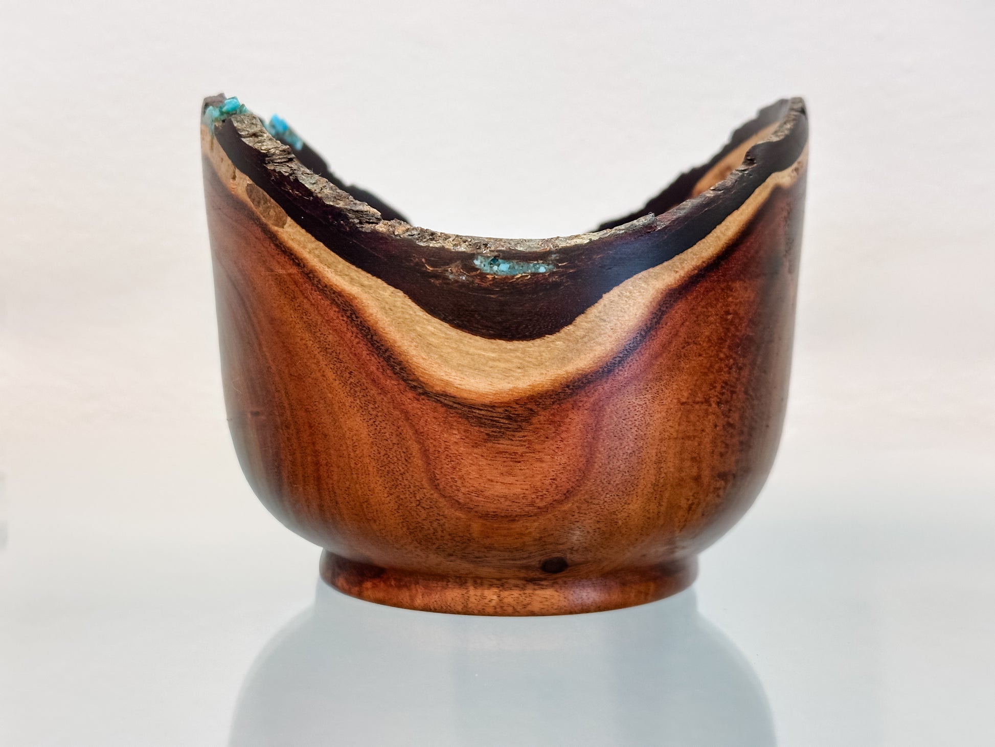 Small Koai’a Wood Bowl with Natural Edge and Turquoise Inlay